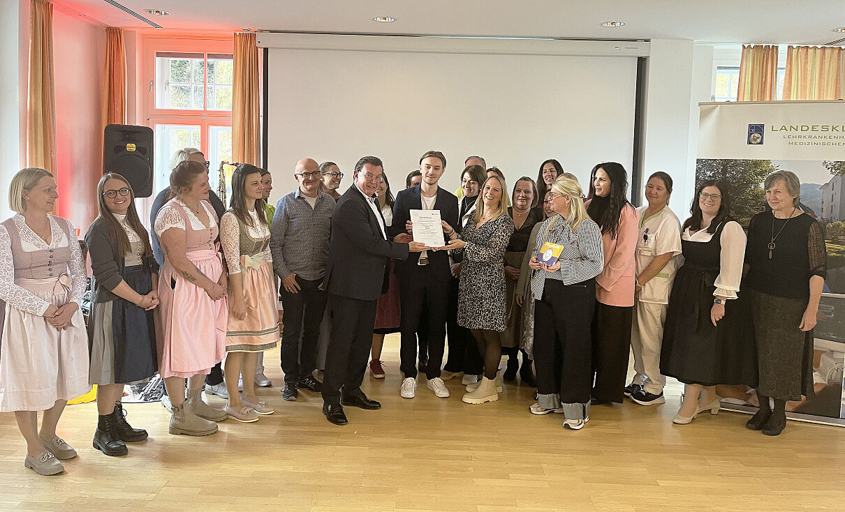 Landtagspräsidentin Brigitta Pallauf gratulierte am 3. November 2025 dem Team der Landesklinik St. Veit zur Zertifizierung als Einrichtung, die attraktive Rahmenbedingungen für die Pflege schafft. Das Zertifikat „PflegeAttraktiv“ wird vom deutschen Bundesverband Pflegemanagement und der PflegeZert GmbH verliehen und zeichnet Gesundheits- und Pflegeeinrichtungen aus, die einen mehrjährigen hausinternen Prozess zur Attraktivierung des Pflegeberufes und zur Optimierung der internen Abläufe starten. In Deutschland wurde dieses Zertifikat bereits über 60 Mal verliehen, die Landesklinik St. Veit ist die erste Einrichtung in Österreich, die damit zertifiziert wurde. „Die Landesklinik St. Veit hat sich für einen Prozess geöffnet, der jede und jeden aus dem Team mitnimmt und allen Verantwortung übergibt. Es braucht dafür viele Professionen, Hände und Köpfe. Ich bin überzeugt, sie werden damit in Salzburg und Österreich eine Vorreiterrolle für viele andere Einrichtungen einnehmen“, so Pallauf beim Festakt.